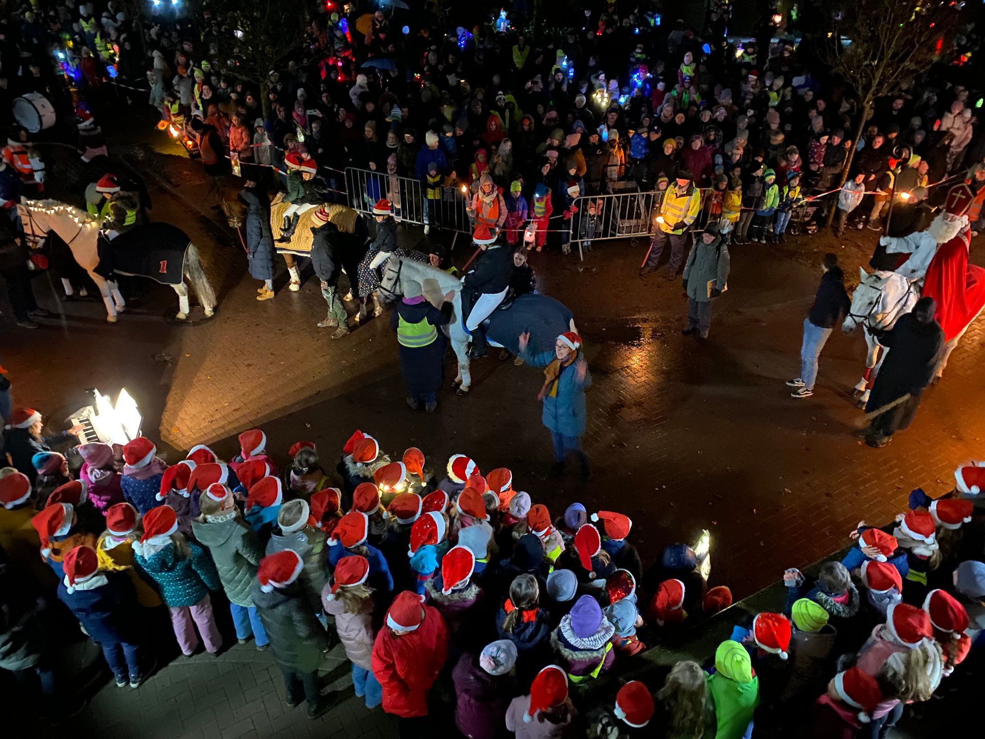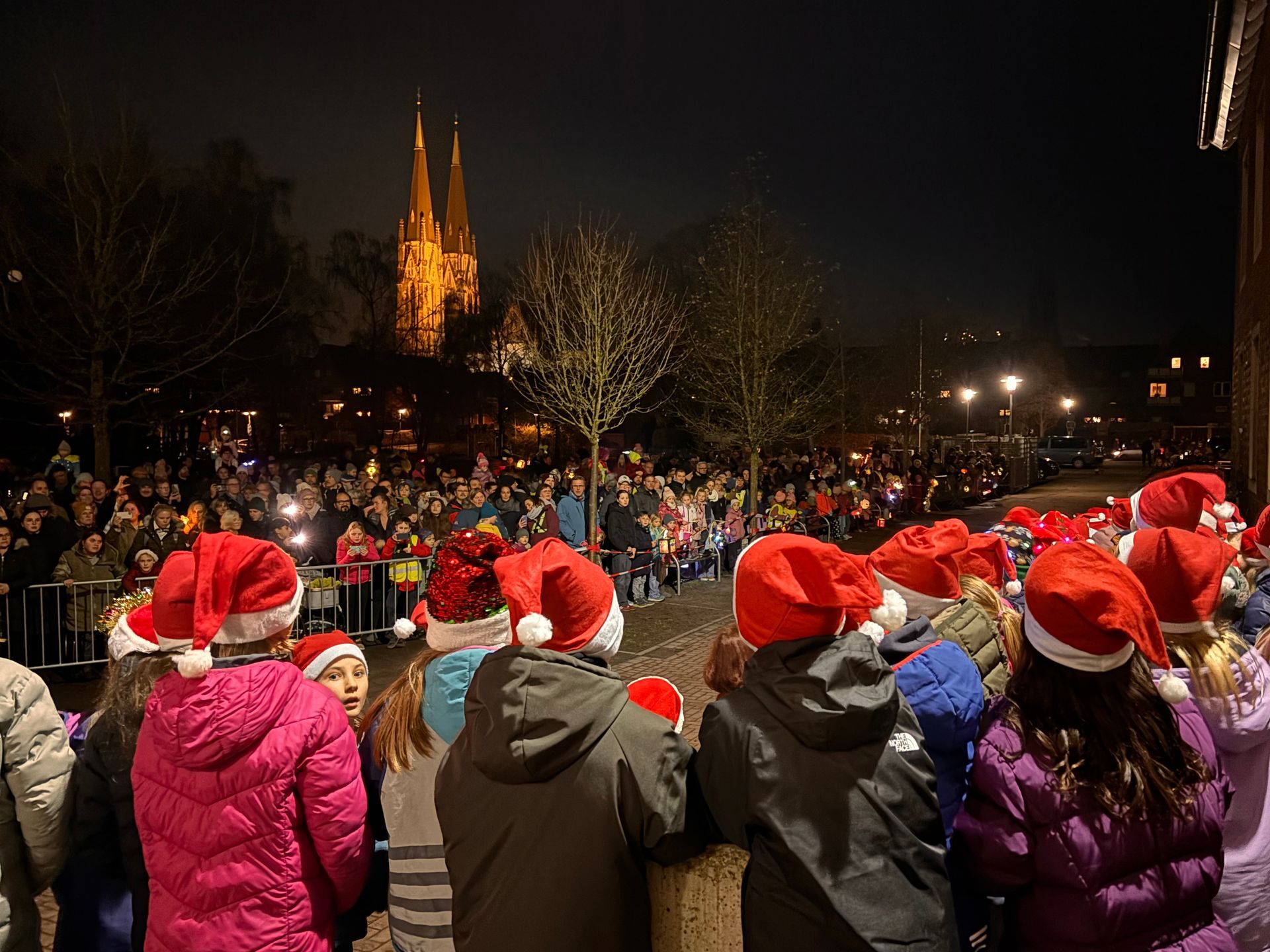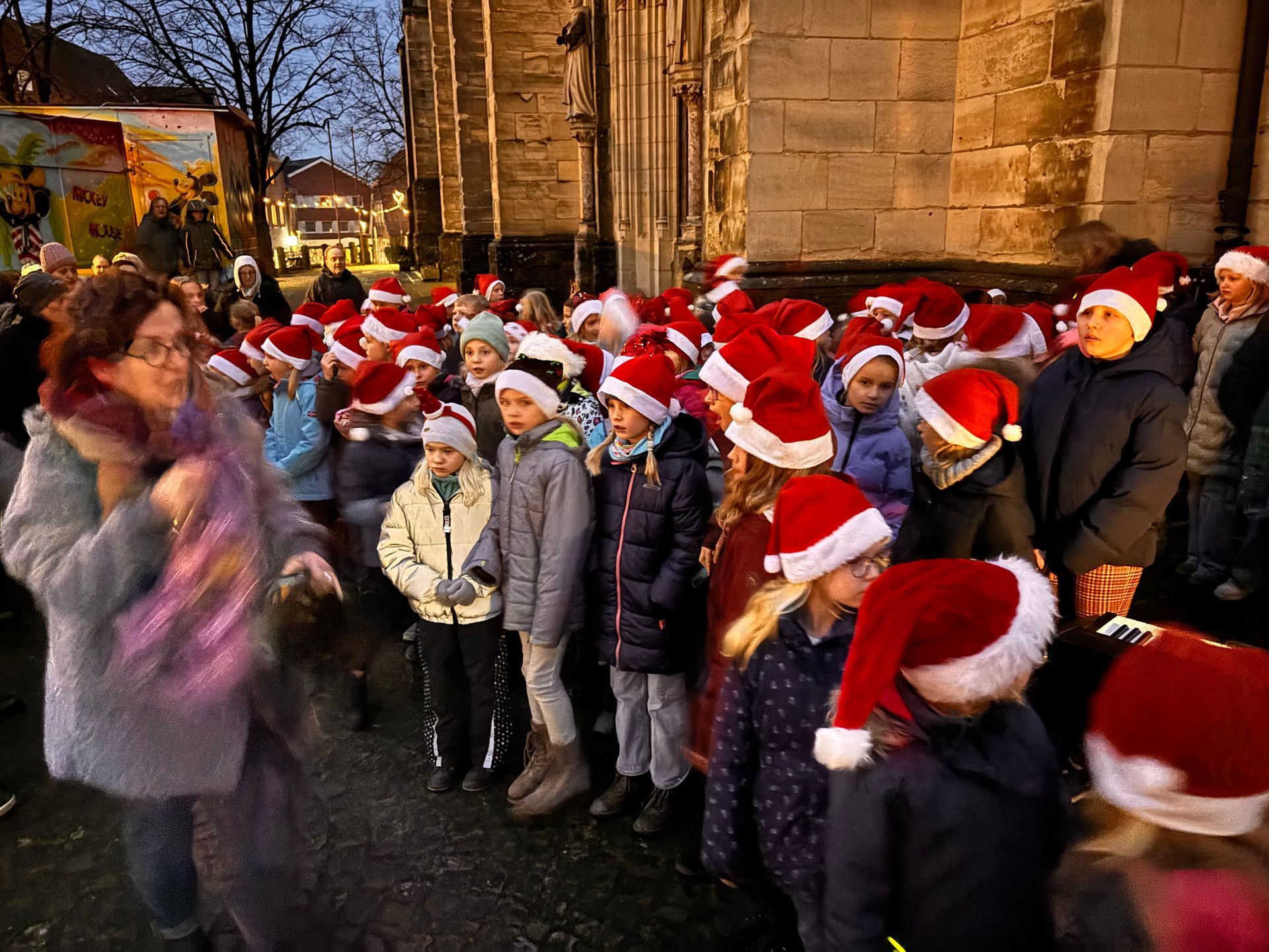 "Heut' ist Nikolausabend da, heut' ist Nikolausabend da!", so schallte es um 17.30 Uhr am Abend des 05.12.2024 über den Schulhof des Johannistandortes der Ludgerischule. 90 Kinder des Schulchores hatten Aufstellung genommen und wurden am Klavier von Frau Eing begleitet und von Frau Meng-Vormweg dirigiert. Eltern, Geschwister und Gäste hatten sich zu Scharen auf dem Schulhof versammelt und warteten gespannt auf den heiligen Mann. Hoch zu Ross kam er in Begleitung der Blaskapelle und einer Reiterstaffel auf den Schulhog geritten und wurde von unserem Konrektor, Herrn Mollenhauer, herzlich begrüßt. Danke für deinen Besuch, lieber Nikolaus, wir freuen uns schon auf das nächste Jahr!