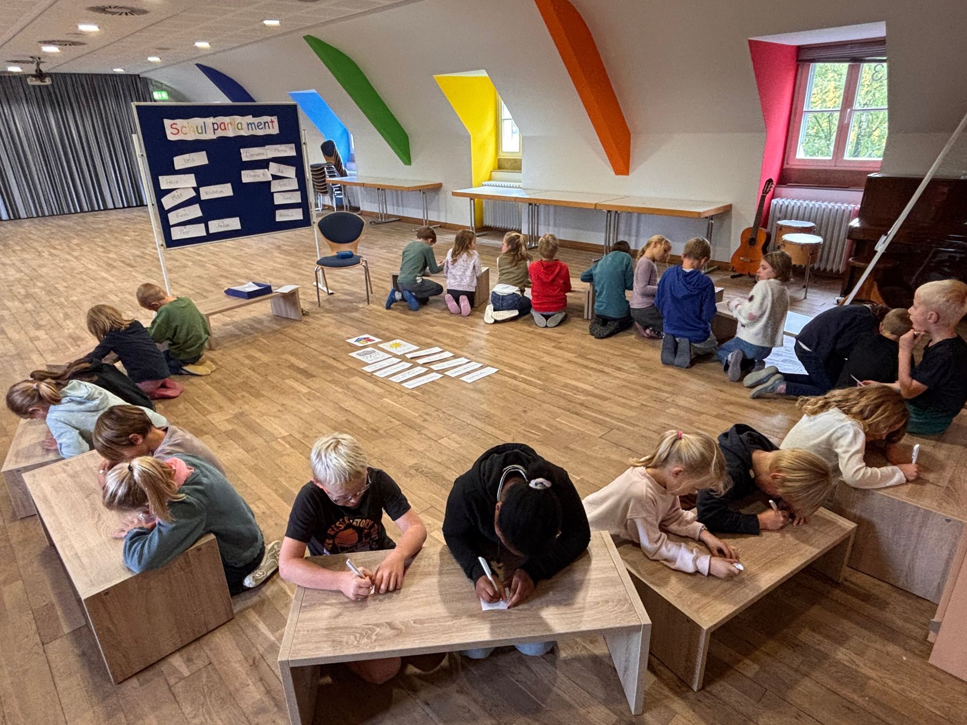 Das Schulparlament des Johannisgebäudes hat am Mittwoch, 08.10.2025 erstmals in diesem Schuljahr getagt und in der ersten Sitzung einen Sprecher und eine Sprecherin gewählt. Djenabou Bah und Peer Wasmer übernehmen als Viertklässerlin und Viertklässler diese Aufgabe.