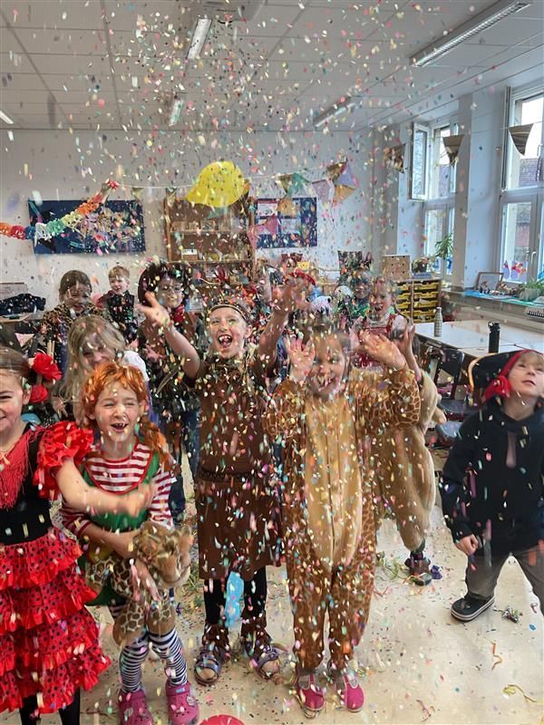 An Weiberfastnacht feierten 440 Kinder und alle Erwachsenen an der Ludgerischule ausgelassen Karneval. Zuerst wurden in den Klassen lustige Spiele gespielt und es wurde am ungesunden Buffett genascht. Nach einer Polonaise durch die gesamte Schule stellten sich die Klassen am Straßenrand auf, um den bunten Karnevalsumzug anzuschauen. Eltern und Kinder der Klasse 4A nahmen als Berkelquallen aktiv am Umzug teil und wurden dabei von ihren Lehrerinnen Frau Ilge und Frau Stengel begleitet.